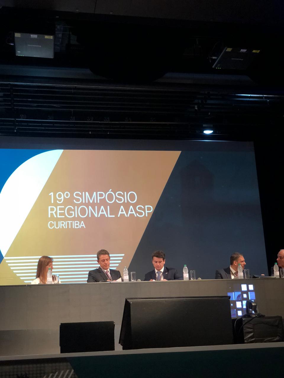 Com início na manhã do dia 18/10, foi realizado o 19° Simpósio Regional da AASP – Associação dos Advogados de São Paulo, em parceria com o IAP. O evento reforça a missão das instituições de difundir a cultura jurídica por meio de debates de alto nível. Missão esta que levou, na oportunidade, os presidentes das instituições a firmarem um termo de cooperação de estudos e contribuições para a advocacia entre o IAP e a AASP.