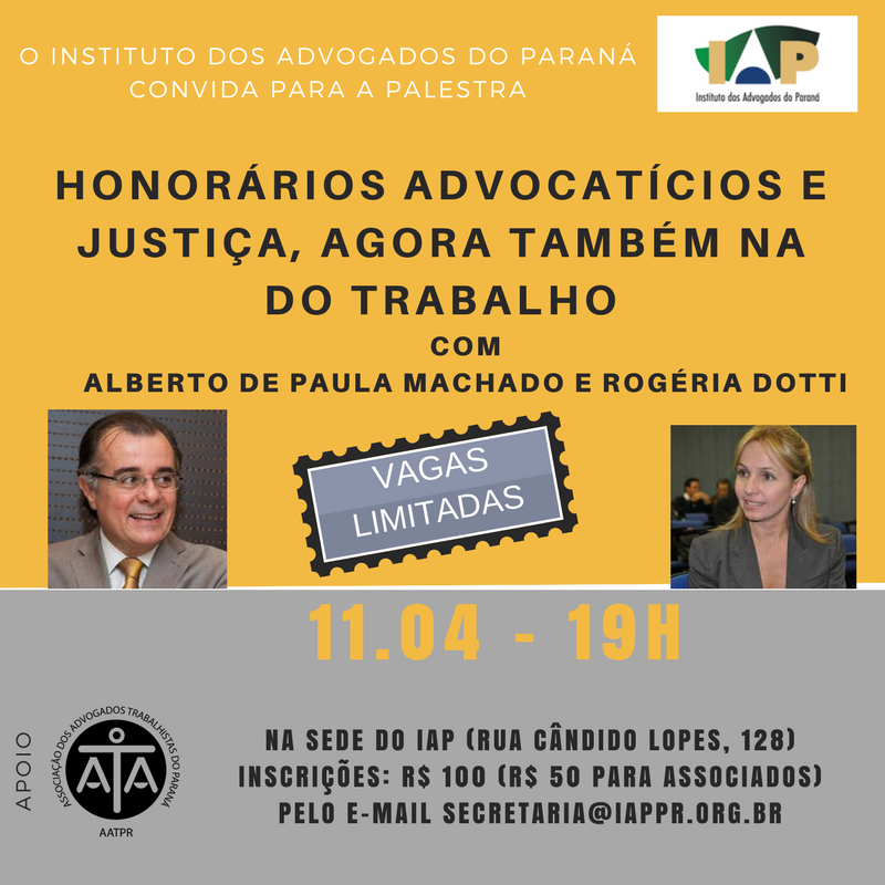 Nos dias 7 e 8 de maio Curitiba sediará o 1º Meeting de Gestão Legal e Marketing Jurídico. O evento será realizado no Instituto dos Advogados do Paraná (Rua Cândido Lopes, 128, 10º andar – Centro, Curitiba).