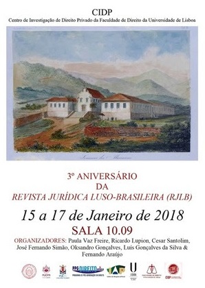 O Instituto dos Advogados do Paraná (IAP) lança-se numa iniciativa internacional para celebrar, em parceria com universidades de grande prestígio, o terceiro aniversário da Revista Jurídica Luso-Brasileira (RJLB), a ser celebrado no Centro de Investigação de Direito Privado da Faculdade de Direito da Universidade de Lisboa (CIDP) de 15 a 17 de janeiro.