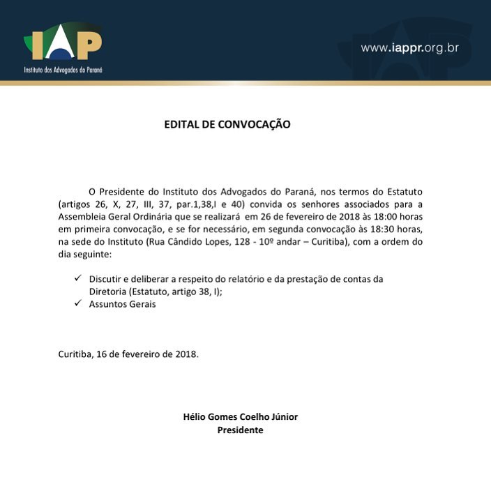 Dia 26 de fevereiro tem Assembleia Geral Ordinária no Instituto