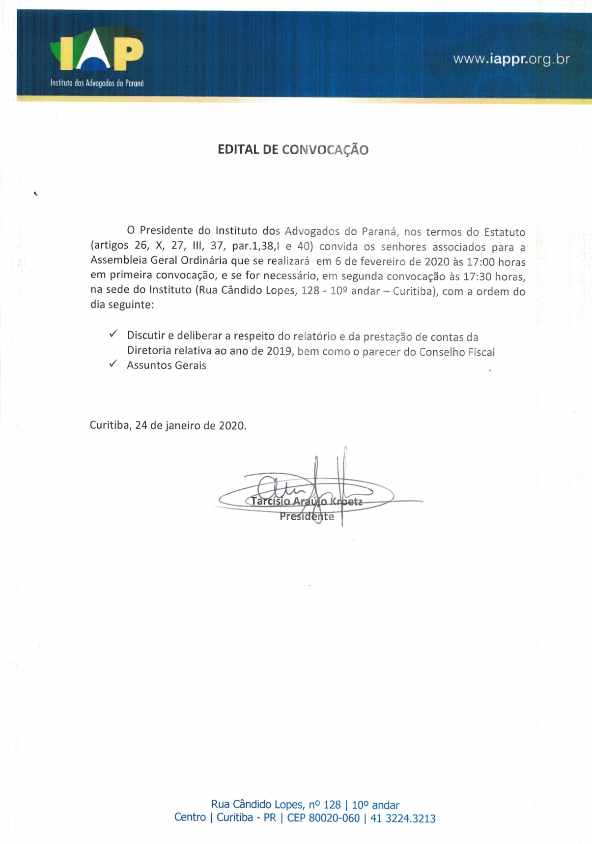 24 de maio de 2019O Instituto dos Advogados do Paraná (IAP) abriu, nesta quarta-feira (24/4), o edital para submissão de artigos científicos para o…