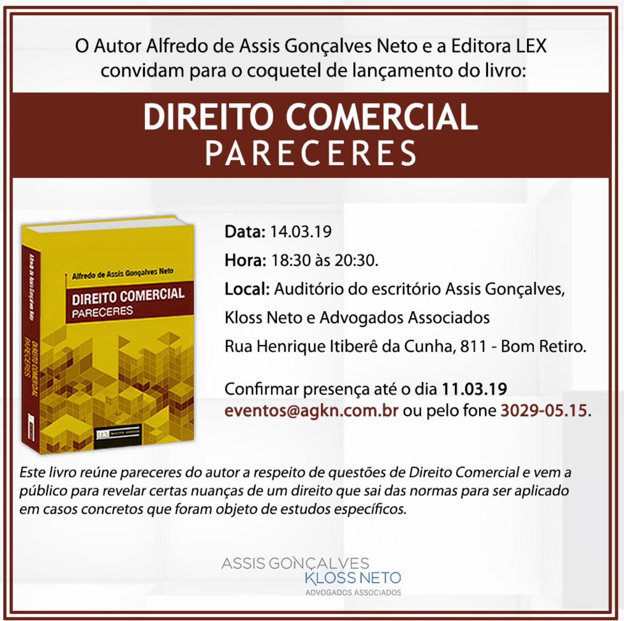 O Instituto dos Advogados do Paraná convida seus associados a prestigiar o lançamento do livro “Direito Comercial – Pareceres”, do Advogado e Professor Alfredo de Assis Gonçalves Neto, membro nato de nossa centenária Entidade e presidente no biênio 1985-1987.